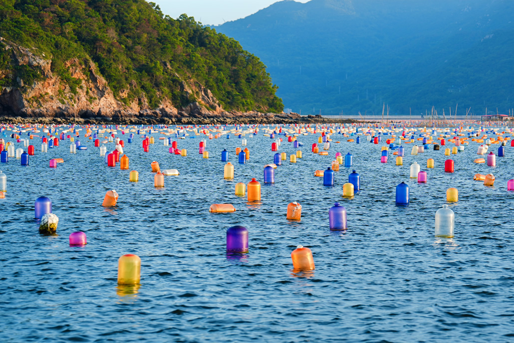迎著文藝的海風,咱倆動身邁入如畫的西線海疆。這里的水天一色萬頃,天光云影共盤桓,最使人稱贊的是色采色彩繽紛的綠色干凈浮球方陣在春陽投射下形成一小片“彩紅海”——環境整潔擺列的浮球在光照下閃灼,貌似一條串彩珠綴于蔚藍真絲,勾畫出古怪的陸上詩畫。